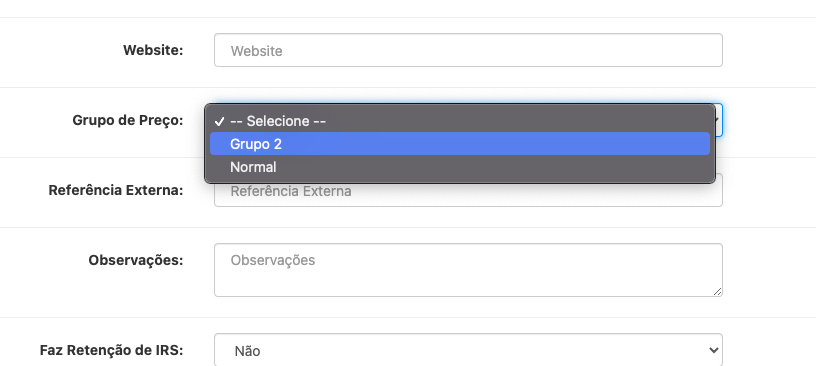Na opção Grupo de Preços, basta alterar para o grupo pretendido.