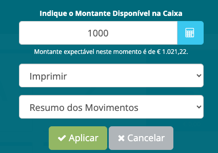 Sugestão: Na mudança de turno, poderá solicitar ao funcionário que sai que faça um Ponto de Caixa. O novo funcionário, que entra com um novo utilizador, poderá fazer um novo Ponto de Caixa, para que possa posteriormente confirmar se os valores conferem.
