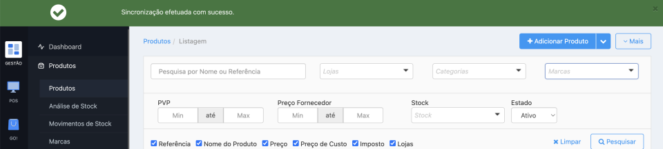 Nota: Sugerimos que, antes de sincronizar os seus produtos, se pretender usar personalizações, como por exemplo, pizza pequena, média, grande com ou sem queijo, ou criar menus (ex: sopa, bebida e prato principal), consulte estes guias para as fazer e associar aos seus produtos: