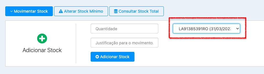Quando gerir o stock, irá ver do lado direito os lotes - basta clicar para seleccionar o pretendido e depois adicione, remova ou altere o stock conforme o pretendido.